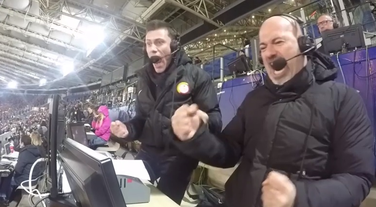 L’emittente ufficiale “Roma Radio” ha appena pubblicato il video che immortala i due radiocronisti, Alessandro Paglia e David Rossi, nel momento del gol di Fazio che deciderà il match e i secondi dopo, quando il Var stabilirà ufficialmente la rete della vittoria romanista. Queste le immagini, buon divertimento.