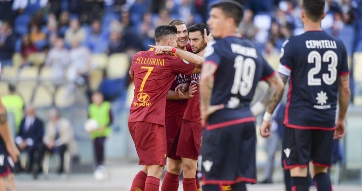 PAGELLE ROMA CAGLIARI – La partita tra Roma e Cagliari si è conclusa sul punteggio di tre a zero in favore dei padroni di casa. Di seguito le pagelle assegnate dalla nostra redazione ai giocatori giallorossi scesi in campo questo pomeriggio all’Olimpico e al loro allenatore Claudio Ranieri:
