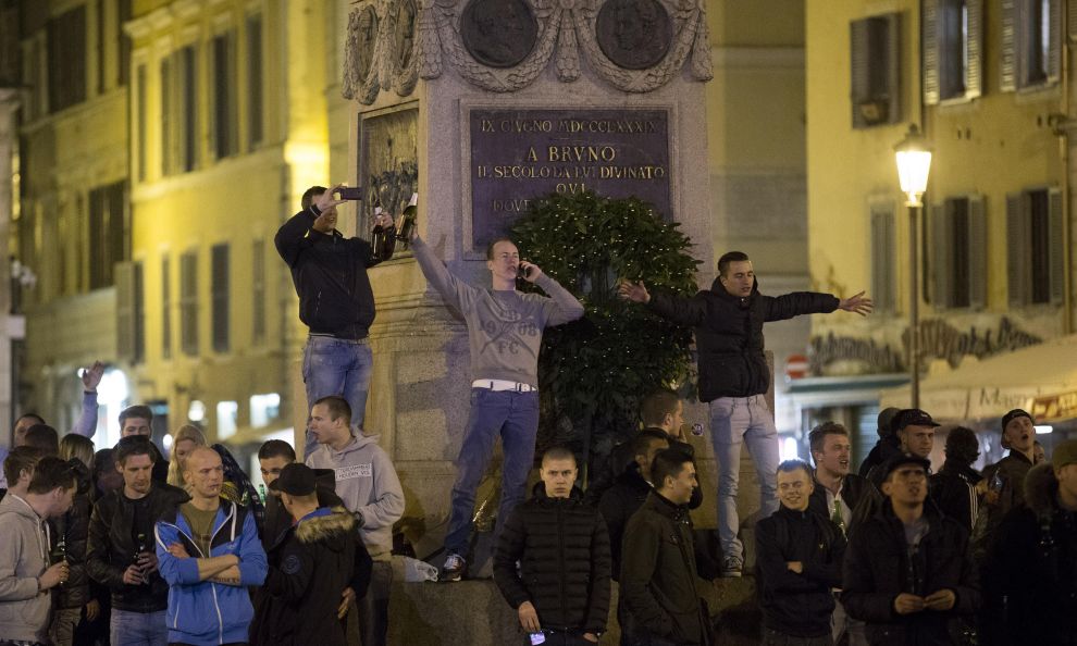 NOTIZIE AS ROMA (Gazzetta.it) – Ieri sera Campo de’ Fiori è stato teatro di scontri tra polizia e tifosi del Feyenoord, visibilmente ubriachi. Il portale “Gazzetta.it” ha diffuso un video della Polizia di Stato, girato durante i disordini. Nel contributo si vedono alcuni supporters olandesi mettere sotto scacco la nota piazza, lanciando bottiglie e cartelli stradali. 33 sono stati i fermi, mentre 16 gli arresti.