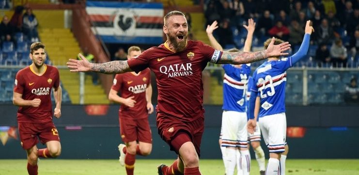 AS ROMA NEWS – Improvvisamente la Roma. Che, a 7 tappe dal traguardo, riappare nella corsa Champions. La vittoria di Marassi contro la Sampdoria (0-1), dopo il ko del Milan allo Stadium contro la Juventus, è pesantissima. Basta guardare la classifica per rendersene conto: Ranieri sale a – 1 dal 4° posto. De Rossi, ritrovando il gol in serie A dopo 13 mesi, riapre dunque la stagione dei giallorossi che, tornando a vincere in trasferta dopo 3 ko di fila (compreso quello di Oporto), riescono finalmente a uscire dal campo imbattuti. L’ultima volta due mesi fa, l’8 febbraio al Bentegodi contro il Chievo (0-3).