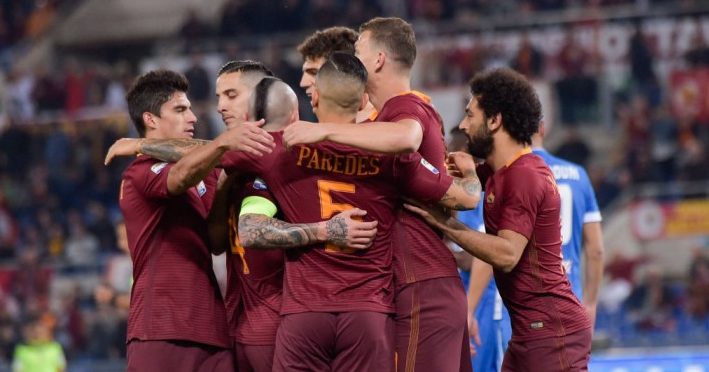 Dzeko 7 – Decide il match con due gol da eccellente rapinatore d’area. Dal 73′ Totti 6 – Gioca al piccolo trotto, ma serve un paio di palloni invitanti non sfruttati da Salah.