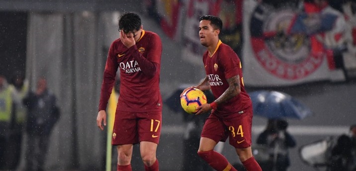 Olsen 4; Fazio 6, Manolas 6, Juan Jesus 5,5; Florenzi 5, Nzonzi 6, Cristante 7, Kolarov 4,5; Under 5,5 (31’ st Santon 5); Zaniolo 6,5, Kluivert 7,5 (35’ st Schick ng). All: Di Francesco 6,5