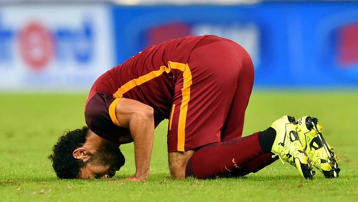 Roma's Egyptian forward Mohamed Salah celebrates after scoring a goal during the Italian Serie A soccer match Uc Sampdoria vs As Roma at Luigi Ferraris Stadium in Genoa, Italy, 23 September 2015 ANSA/SIMONE ARVEDA