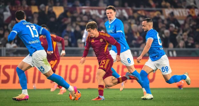 Una Roma opaca viene battuta all’Olimpico per 1 a 0 dal Napoli di Conte: decide una rete di Neres nel primo tempo.