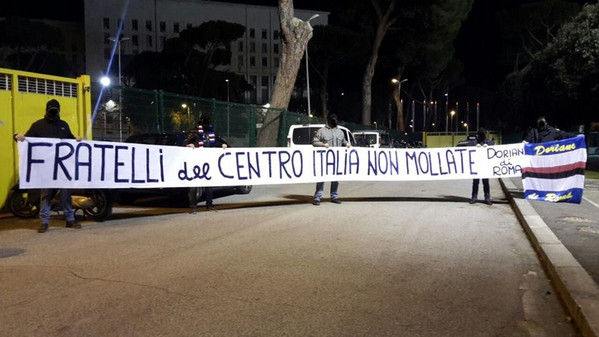 NOTIZIE AS ROMA – “Ci dispiace, questo non può entrare. Non è ignifugo”. È quello che si sono sentiti rispondere alcuni tifosi della Sampdoria che ieri sera, in occasione della gara di Coppa Italia disputata allo stadio Olimpico dai blucerchiati contro la Roma, avevano portato con loro uno striscione per mostrare solidarietà nei confronti delle popolazioni del Centro Italia, colpite in queste ore dalla micidiale combinazione terremoto-neve che ha prodotto ulteriori morti e dispersi oltre a un’ingente quantità di sfollati e persone senza i più basilari servizi.