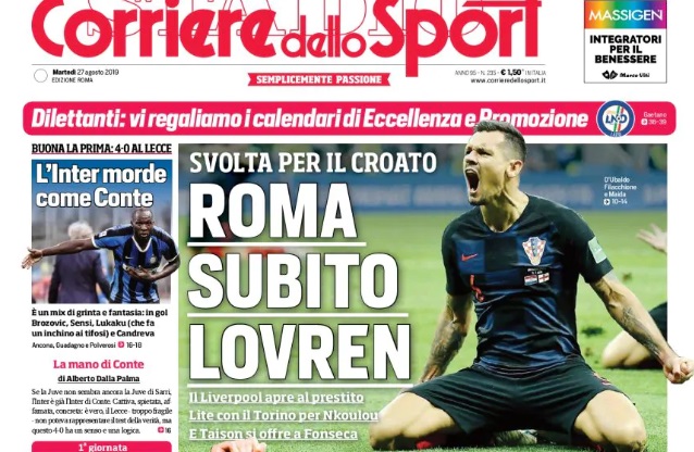 A riferirlo è l’edizione odierna del Corriere dello Sport, che questa mattina nell’edizione romana scrive in prima pagina: “Roma, subito Lovren“. La svolta è arrivata nelle ultime ore, quando il club inglese ha aperto alla cessione del calciatore con la formula del prestito.