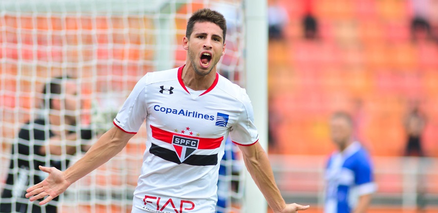 SÃO PAULO, SP - 05.02.2016: SPFC X AGUA SANTA - Jonathan Calleri do São Paulo durante partida entre SPFC x Água Santa, pela terceira rodada do Campeonato Paulista 2016, realizada no Estádio Municipal Paulo Machado de Carvalho, conhecido como Estádio do Pacaembu. (Foto: Maurício Rummens/Fotoarena/Lancepress!)