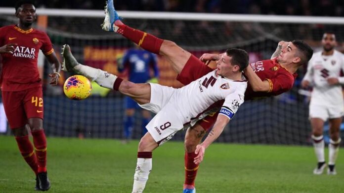 Pau Lopez 6; Florenzi 4, Smalling 5,5, Mancini 4,5, Kolarov 5; Diawara 5; Veretout 5,5 (18’ st Mkhitaryan 5,5); Zaniolo 5 (42′ st Under s.v), Pellegrini 5, Perotti 6,5 (28’ st Kalinic 5); Dzeko 4,5. All.: Fonseca 5.