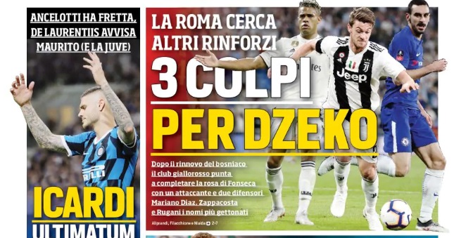 Poi dall’ altra si parla di Roma : 3 colpi per .. chi ? Per i tifosi ? Per Fonseca ? Per la la Champions ? No, per Dzeko. Ma che caxxo significa ??? Se non facciamo altri 3 acquisti occhio che Dzeko va all’ Inter ? Ma per favore ! Scrivete piuttosto da dove uscirebbero i SOLDI per i 3 colpi che qua la gente si illude che siccome non prendiamo Icardi allora magicamente escono fuori dei soldi per altri colpi…