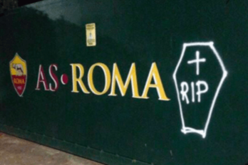 I supporters biancocelesti hanno architettato una sorta di “funerale” per la Roma, recandosi al centro sportivo di Trigoria nella notte e imbrattando il cancello esterno con disegni di lapidi accompagnate alla scritta Rip. Anche il piazzale è stato deturpato con sagome di cadaveri seguiti dal medesimo messaggio.