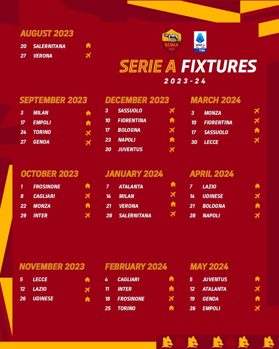 Ore 12:50 – Di seguito il calendario della Roma, partendo dalla prima giornata: