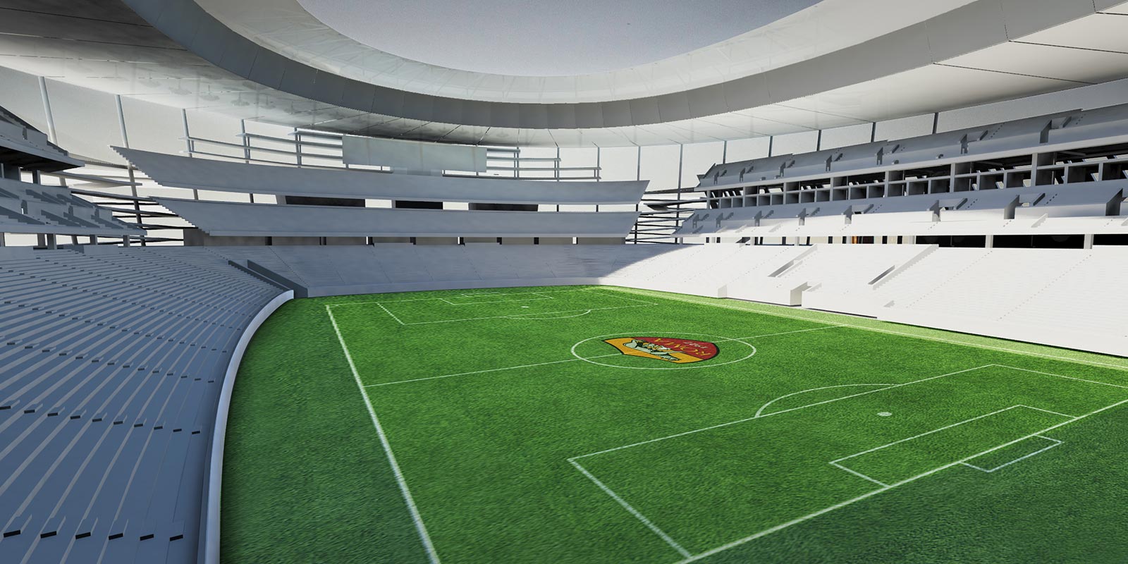 Lo Stadio è il centro del progetto: oltre agli spazi destinati all’attività sportiva, sono previste, al di sotto delle gradinate, piccole superfici commerciali (chioschi), club e ristoranti, oltre a locali tecnici e magazzini. Vi si potranno tenere anche spettacoli, concerti, eventi. Rispetto al primo progetto, la variazione più consistente è nel numero di posti: prima erano 52.500 espandibile a 60mila, ora solo fino a 55mila grazie alla modularità dei megaschermi e ad alcune aree dei settori non VIP. La curva sud resta su due anelli, divenendo una specie di «muro» giallorosso mentre il resto dell’impianto avrà le gradinate suddivise in tre anelli. Previsti posti auto e posti in gradinata riservati ai disabili.