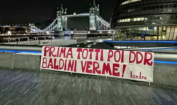 • a Roma non si concluderà mai un cazzo cari ragazzi….adesso che questo Presidente vi ha chiamato a raccolta i primi schifati sono stati i giornalisti di Caltagirone e voi pendete dalle labbra di questi nemici. per quanto riguarda DDR , dispiace, ma anche qui squillano forti le trombe dei pennivendoli che, ieri contestavate e che oggi hanno trovato terreno fertile per ferire ancora di piu la Roma. lo striscione di Boston e questo di Londra pensate che sia figlio della curva….io ne dubito moltissimo ……………….forse e più figlio della tribuna Monte Mario