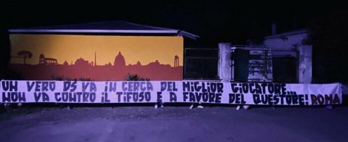 “Dopo un collaboratore come presidente… ci mancava un ds confidente e Un vero ds va in cerca del miglior giocatore… Non va contro il tifoso e a favore del questore sono le frasi che recitano gli striscioni esposti nella parte est della città.