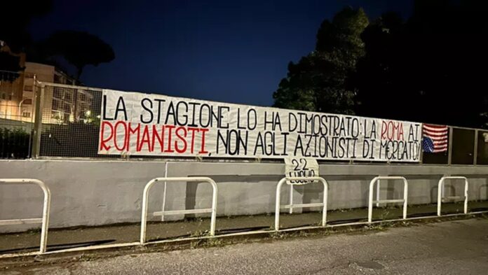 Non si placa il malcontento di una frangia della tifoseria romanista nei confronti della proprietà americana. Nella notte, a Roma, sono apparsi due striscioni di protesta indirizzati alla famiglia Friedkin, chiaro segnale di una tensione latente che continua a riaffiorare nei momenti cruciali della stagione.