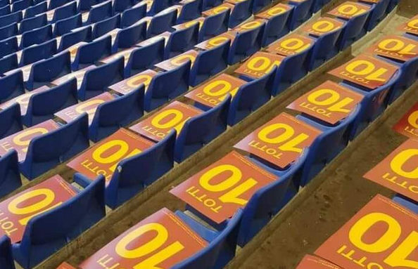 ORE 15:40 – Svelata la coreografia iniziale che la Roma ha preparato per Totti: sono infatti state disposti su tutti i seggiolini dell’Olimpico di Monte Mario e Distinti Sud dei cartoncini rossi con il numero 10 e il nome ‘Totti’ raffiguranti dunque la maglia del Capitano. Intanto lo stadio comincia a riempirsi proprio in questi minuti.