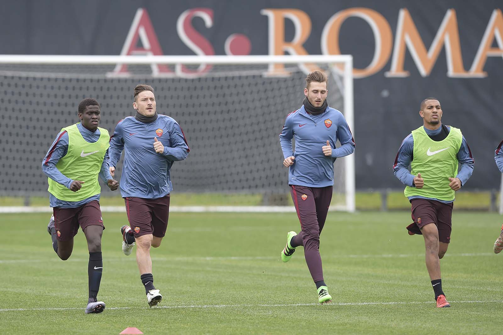 CASTAN OUT PER INFLUENZAÂ – Allenamento di rifinitura per la Roma in vista della trasferta di Udine in programma domani pomeriggio: Spalletti recupera Pjanic, Nainggolan e De Rossi, oltre a Manolas, tutti regolarmente in gruppo.