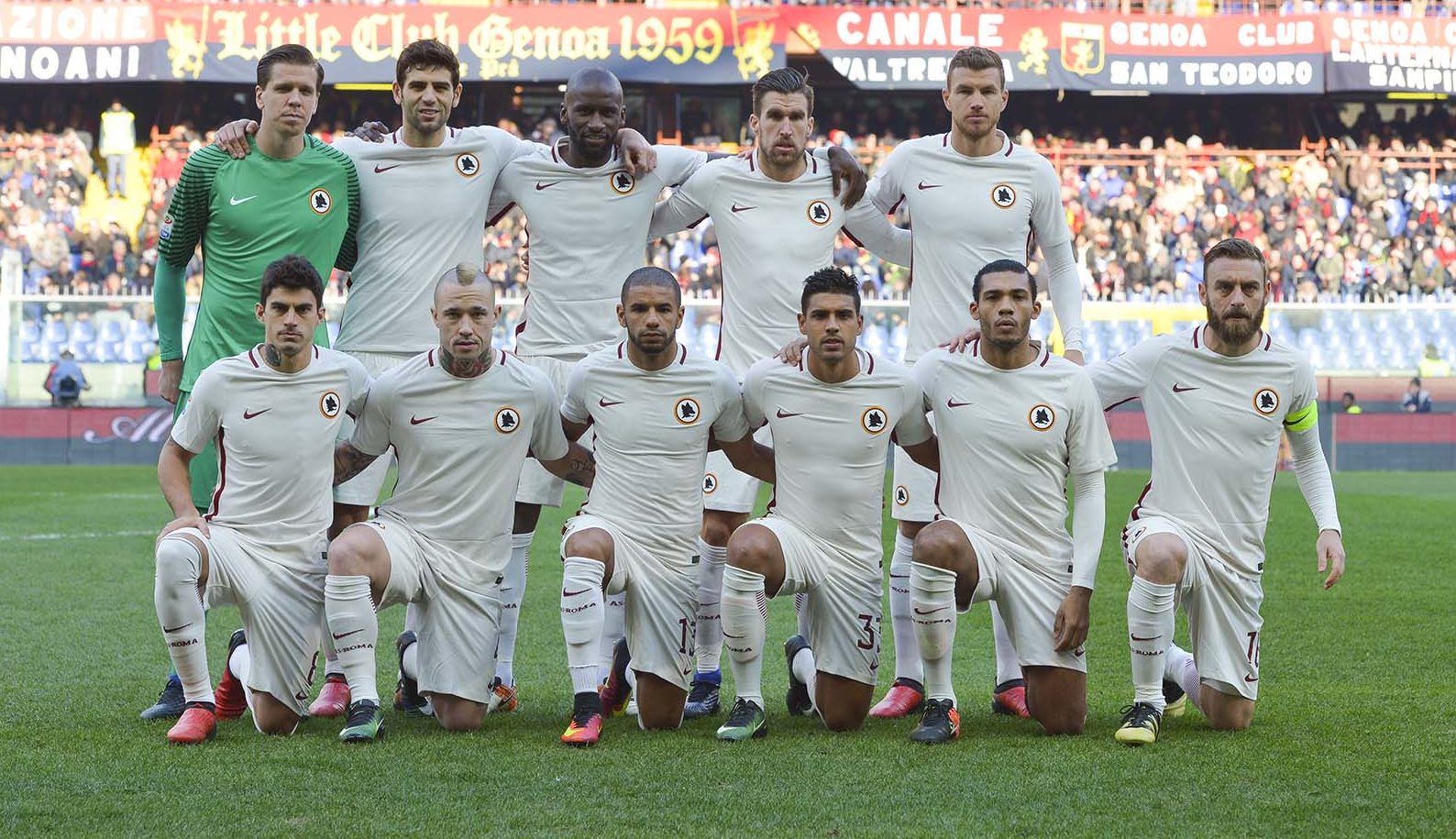 Szczesny; Manolas, Fazio, Juan Jesus; Bruno Peres, Paredes, Strootman, Emerson; Nainggolan, El Shaarawy; Dzeko.