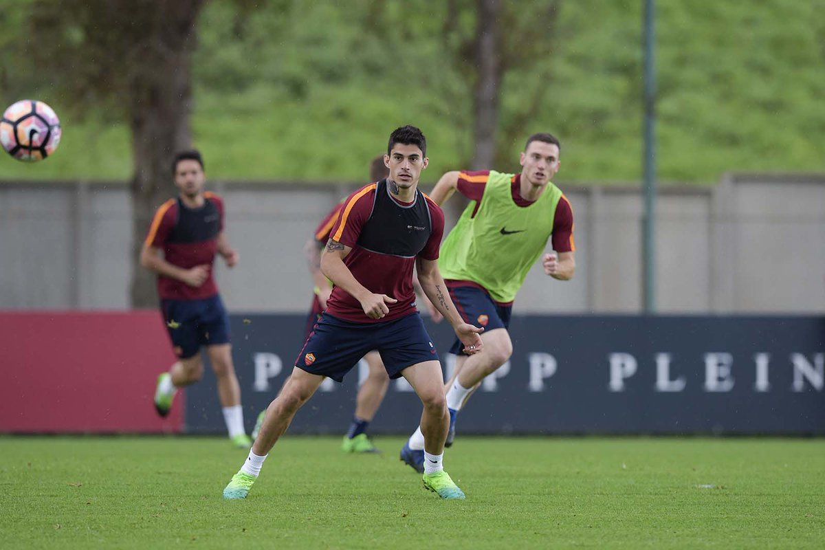LA SEDUTA DEL POMERIGGIO – Dopo la seduta di questa mattina, interamente svolta in palestra, la Roma è scesa in campo nel pomeriggio per la seconda sessione odierna. Il gruppo ha effettuato un riscaldamento di carattere tecnico sul campo B, con il torello come esercizio principale. Il programma prevede una parte tattica con la consueta partitella a chiudere la seduta. Presenti alcuni ragazzi della Primavera con la Prima Squadra, assente Emerson Palmieri che svolge un lavoro specifico in palestra. Rüdiger e Fazio non sono in gruppo perché anch’essi per un lavoro specifico programmato anticipatamente: i due non sono in dubbio per lunedì.