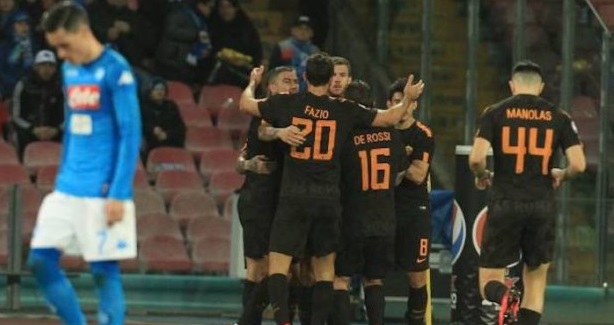 UNDICI UOMINI, UN GOL – Meno di sei minuti di gioco e Napoli già in vantaggio. Roba da non crederci. Solo che dopo meno di sessanta secondi dalla rete di Insigne, ecco il gol del pareggio di Cengiz Under, con deviazione pirotecnica dell’ex Mario Rui. Un’altra roba da non crederci. E, prima della mezzora, gol di Dzeko, con tutti e gli undici giocatori di Eusebio Di Francesco impegnati nell’azione vincente. Tutto vero? Sì, tutto vero. Ma cosa succede al San Paolo? Napoli sistematicamente padrone del pallone, Roma rintanata dietro e pronta a partire per andare a dar fastidio a Reina e alle sue sentinelle. Morale della favola, Roma in vantaggio al fischio d’intervallo. Occhiata veloce alla classifica parziale: giallorossi al terzo posto, un punto davanti alla Lazio. Ma con un secondo tempo intero da giocare. E, nelle menti dei tifosi, un interrogativo da brividi: riuscirà la Roma a non crollare, come le è capitato molto spesso, nella seconda frazione di gara? Tutti di nuovo in campo, allora. Poi Dzeko segna anche la terza rete della Roma e Perotti firma la quarta. Tutto ancora vero? Sì, tutto ancora vero. E il solito crollo? Macchè. Anzi, un crescendo fatto di tante piccole, belle cose, sia sotto l’aspetto tecnico-tattico che mentale. Massa fischia la fine e non c’è neppure bisogno di dare un’altra occhiata alla classifica: Roma al terzo posto, aspettando il derby di Milano. Siate sinceri, quanti di voi lo avevano ipotizzato? Forse in pochi, cioè tutti quelli che avevano dimenticato che la Roma è Magica. E pure un po’ pazza.