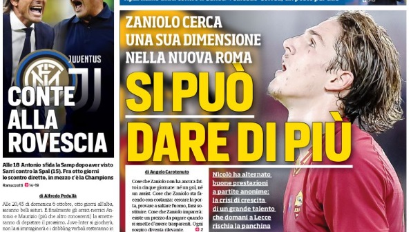 ULTIME AS ROMA – “Zaniolo, si può dare di più“. Il Corriere dello Sport oggi in edicola nella sua edizione romana rivolge tutte le sue attenzioni sul giovane talento giallorosso, reo, a suo dire, di aver alternato buone prestazioni a partite anonime.
